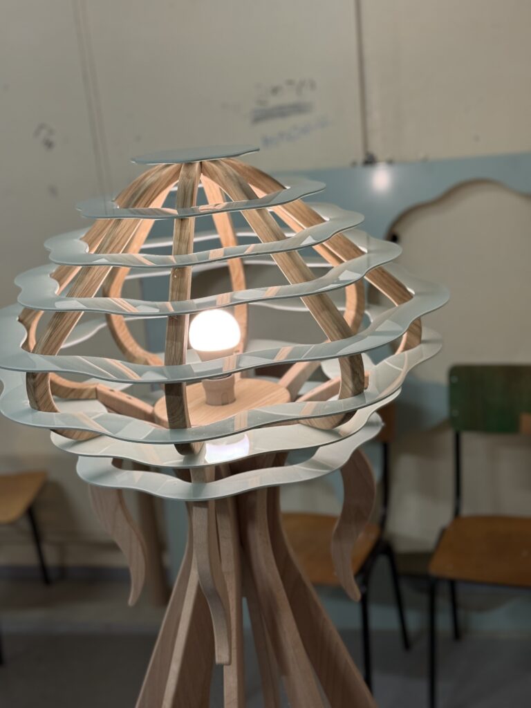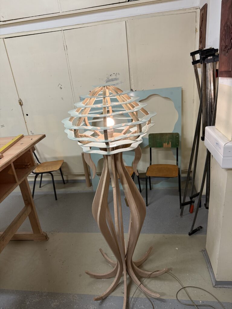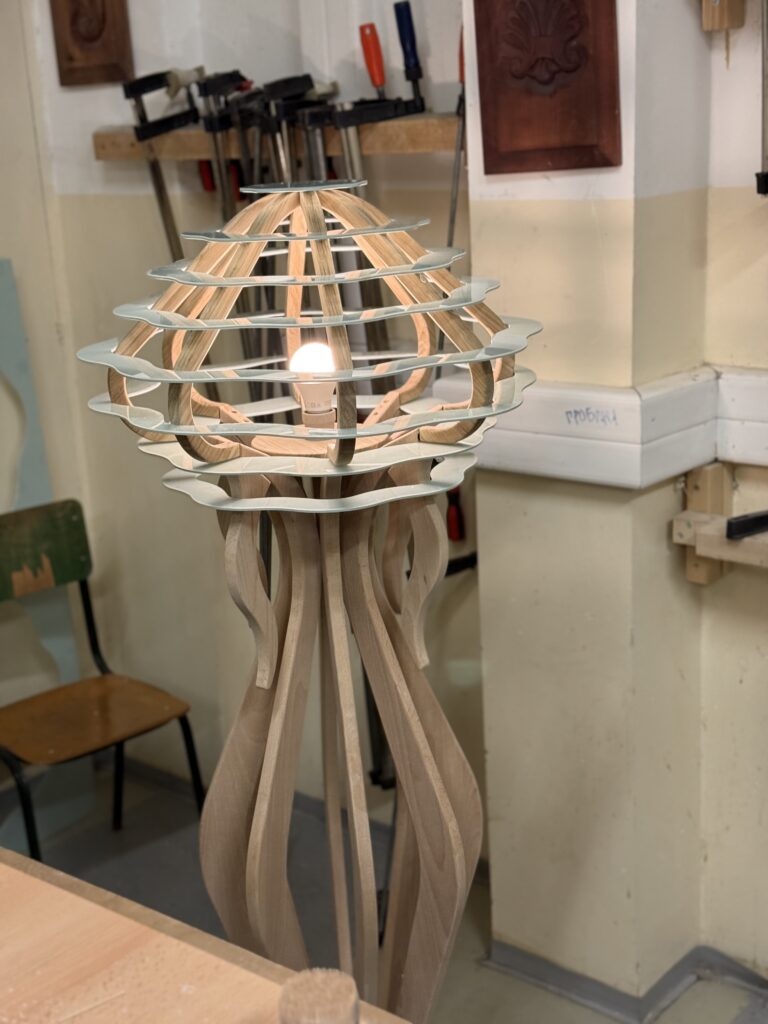 Bíborka egy különleges, medúzára emlékeztető állólámpát álmodott meg. A terv megvalósítását gondos tervezési és előkészítési folyamat előzte meg, amelynek során prototípus is készült.