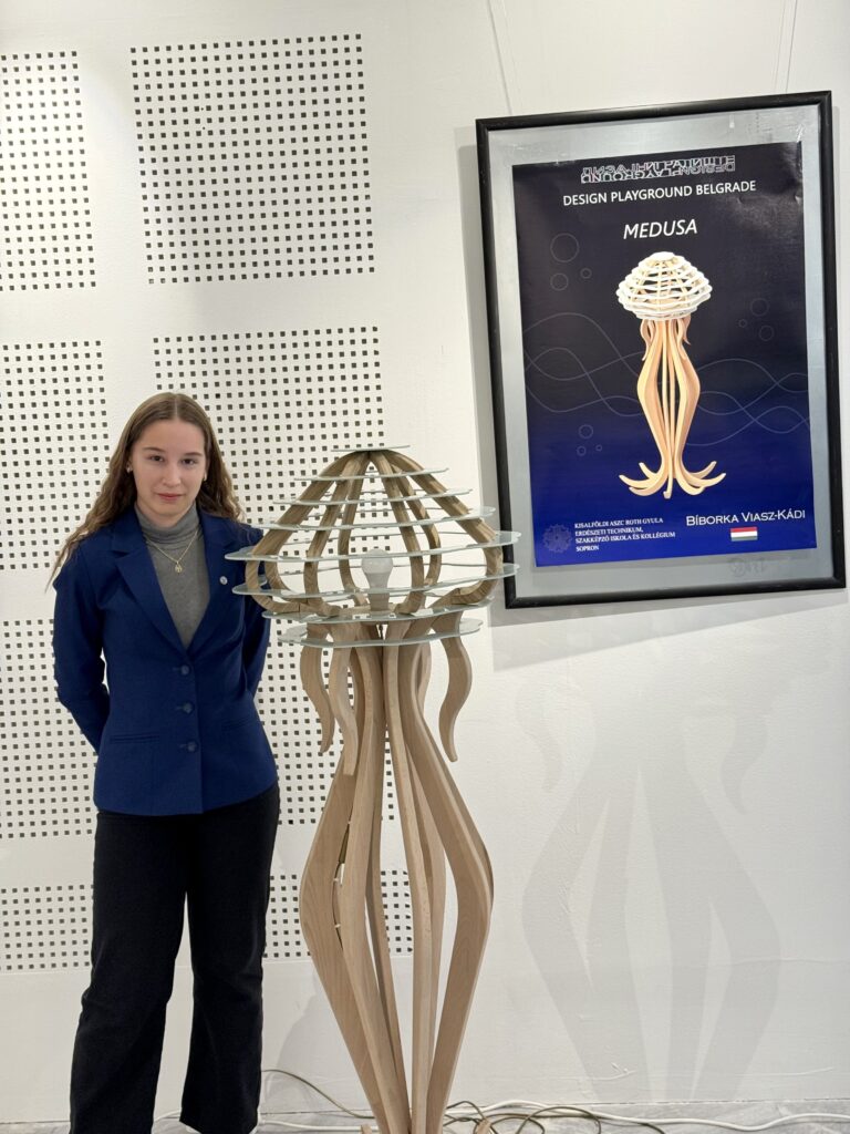 Március 2. és 6. között Belgrádban rendezték meg az BELGRADE DESIGN WEEK 2026 nemzetközi formatervezési versenyt, amelynek keretében a résztvevő diákoknak egy állólámpát kellett megtervezniük és elkészíteniük. Iskolánkat az idei évben a tavalyi évhez hasonlóan Viasz-Kádi Bíborka képviselte.
