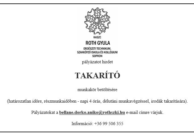 9400 Sopron, Szent György utca 9. - (+36)99/506-470 FAX: (+36)99/506-479 - rothszki@rothszki.hu