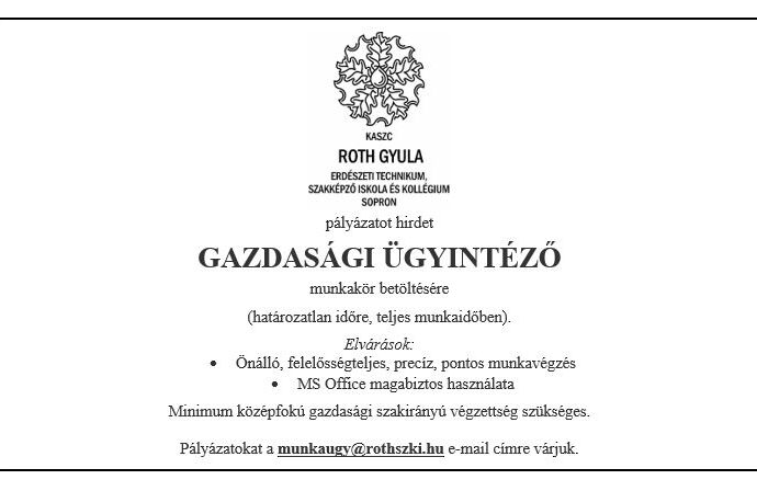 9400 Sopron, Szent György utca 9. - (+36)99/506-470 FAX: (+36)99/506-479 - rothszki@rothszki.hu